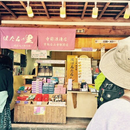 滋賀県にある石山寺の入り口前らへんには、いくつかのお店が賑わっている場所があります。
