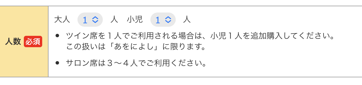 1人で予約する際、もう1つの席は小児料金の特急料金とデラックス料金(110円)となります。