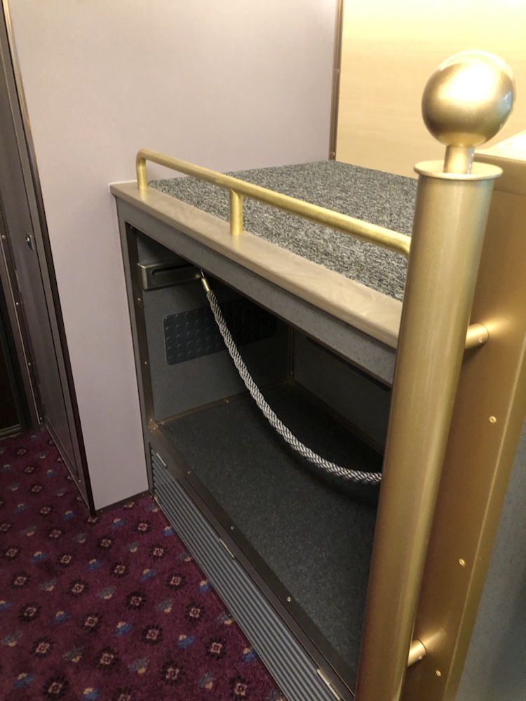 「あおによし」にはツイン席と3−4人向けのサロン席しかありません。では、1人で乗るにはどうするのかというと、ツイン席を2つ分予約するというやり方になります。