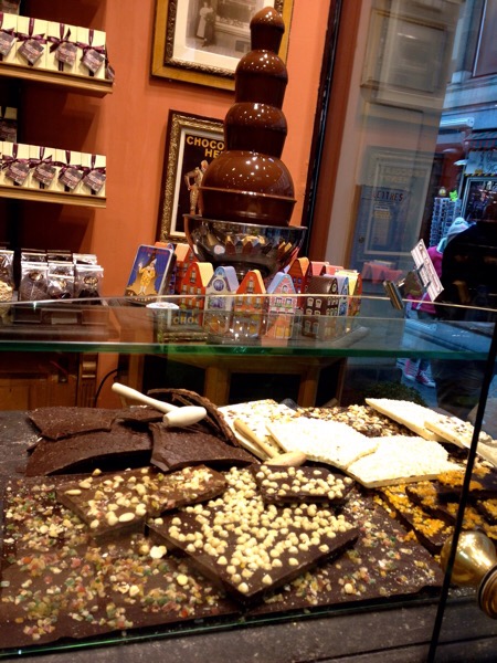 ワッフルも道沿いで販売中です。さすがベルギーといった雰囲気でワクワクしますよ。チョコの試食ができるお店もありました。