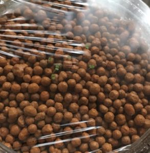 その上にセラミックボールを巻いて、乾燥防止でラップして芽がでるのを待ちます。