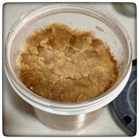 1番上らへんや、混ぜが甘いとところどころ色合いが違ったり、まだ白い麹が残ってたりしますが、冷蔵庫でも発酵は進むので特に気にしてません。